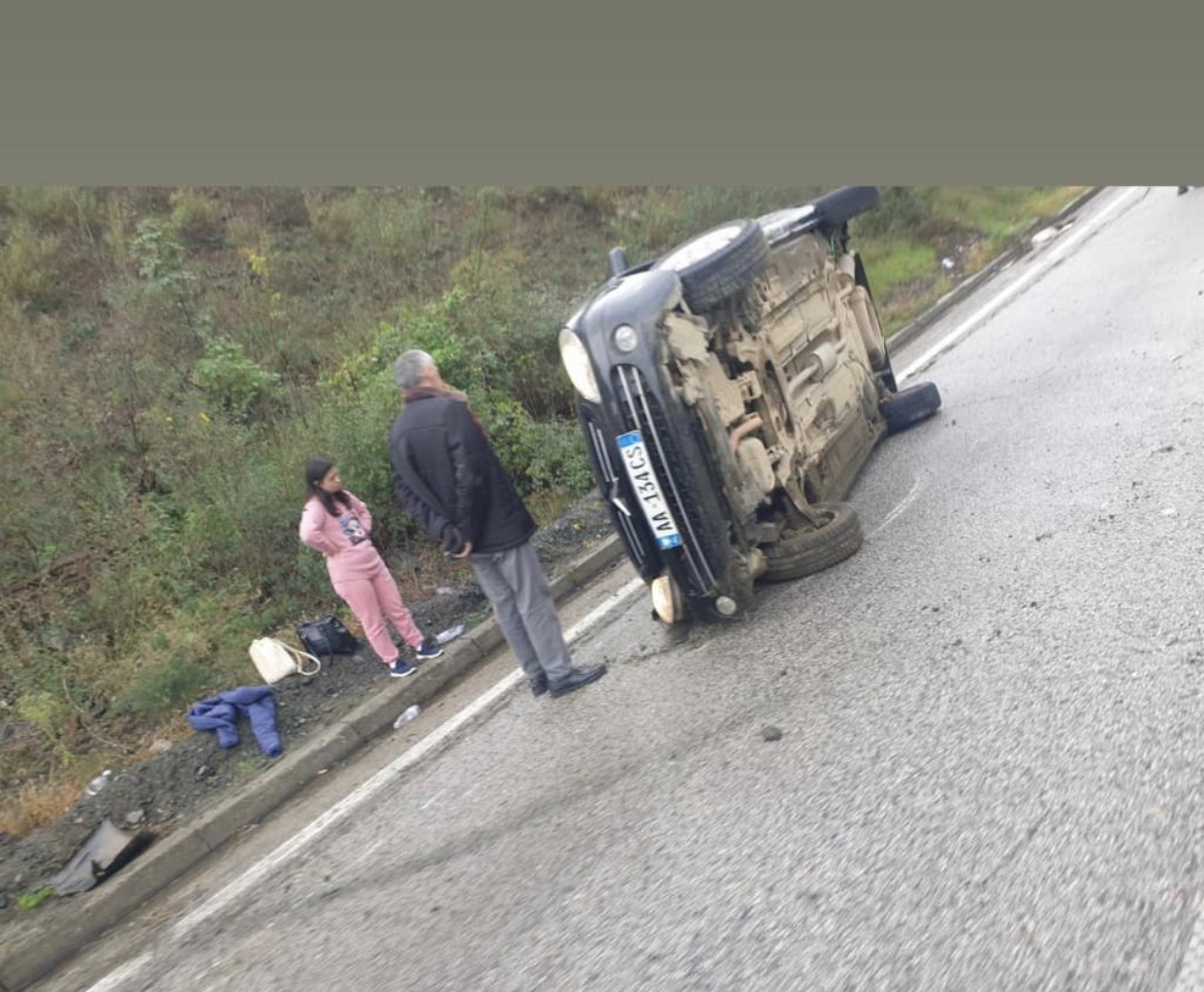 Aksident i frikshëm në Librazhd, përmbyset makina në mes të rrugës