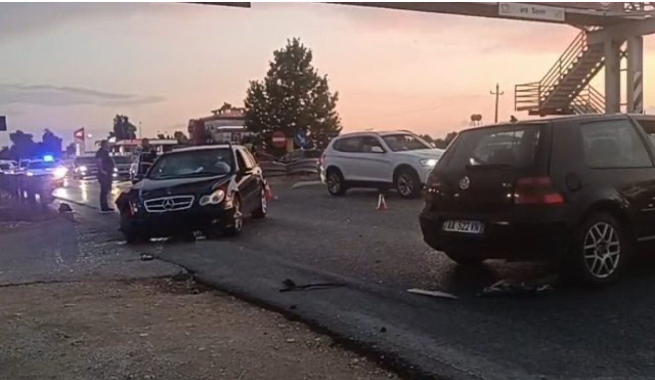 Bëhet me dije se një automjet tip Volkswagen ka tentuar të kalojë në anën tjetër të rrugës dhe është përplasur nga një mjet tip ‘Benz’.