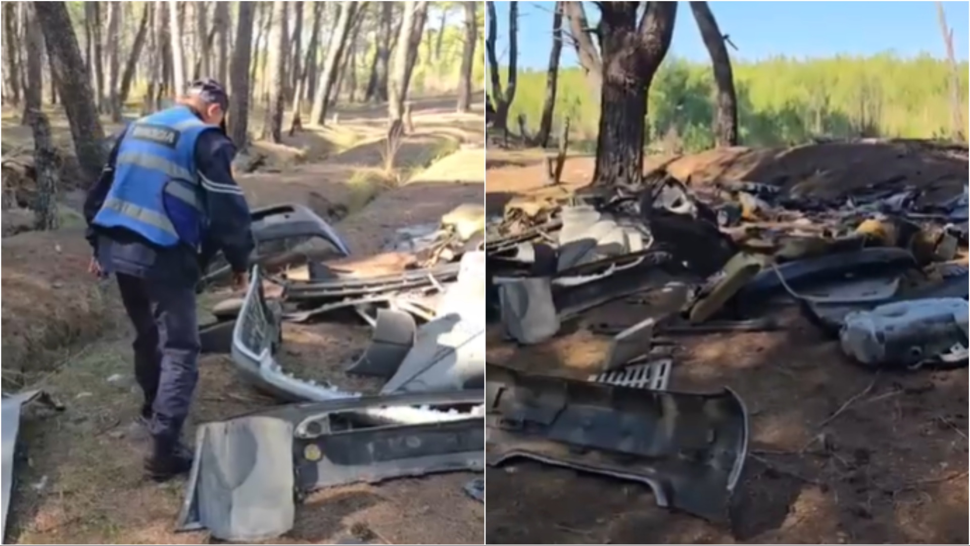 Në vendet ku janë gjetur pjesë makinash ka mbërritur edhe policia. Shërbimet e rendit janë njoftuar për praninë e mbetjeve nga kalimtarë të rastësishëm, të cilët kanë vërejtur dhe raportuar ndotjen që po bëhet brenda pyllit. Prezenca e policisë në ato pika tregon reagimin fillestar të institucioneve ndaj evidentimit të materialeve të hedhura.
