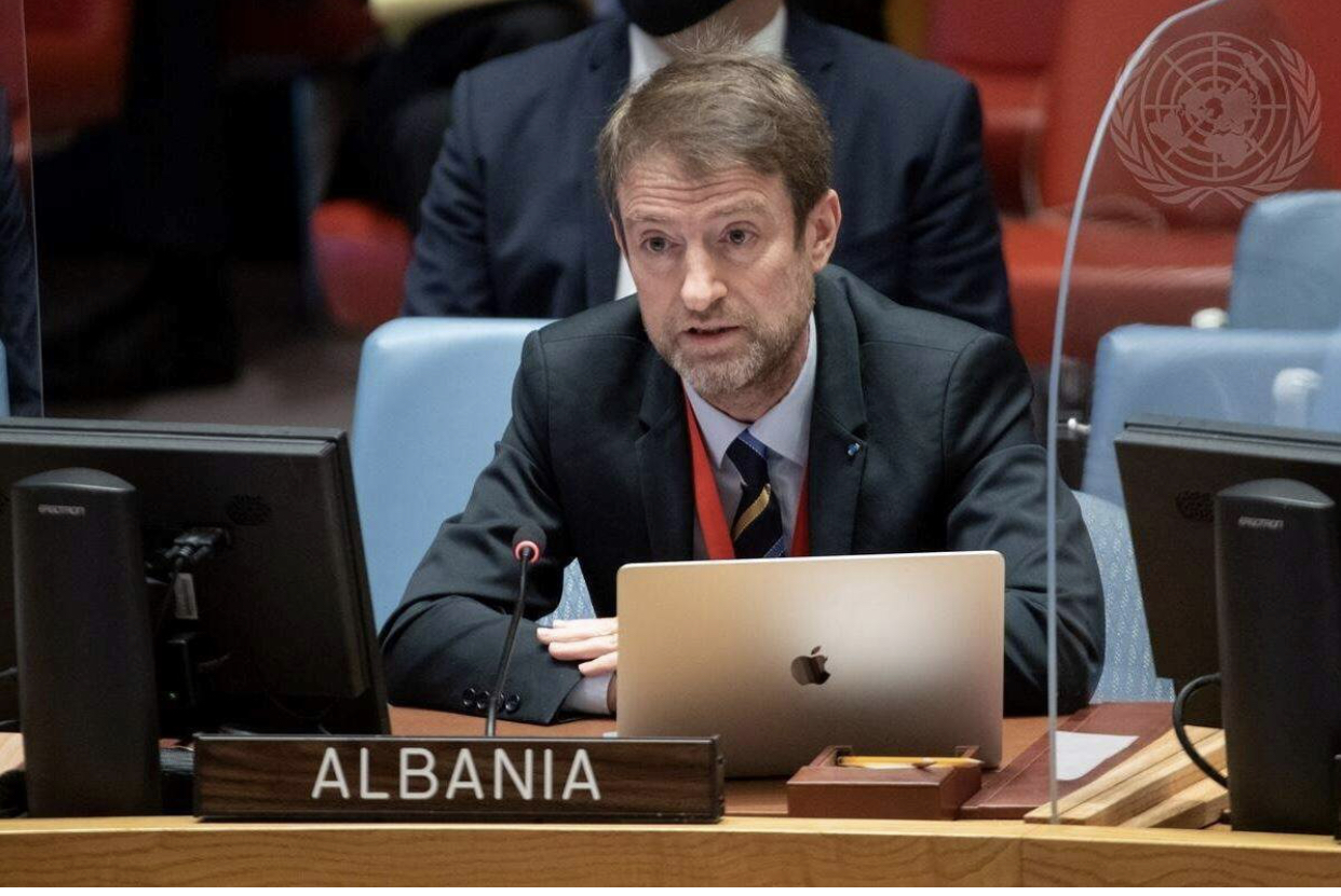 Ambasadori i Shqipërisë në OKB, Ferit Hoxha deklaroi në Këshillin e Sigurimit se Rusia është agresori i vetëm ndërsa Ukraina po mbrohet nga sulmet vdekjeprurëse që nuk kanë kursyer askënd as civilet. Lufta në Ukrainë për ambasadorin shqiptar përbën edhe dramat më tragjike më individuale të njerëzimit.