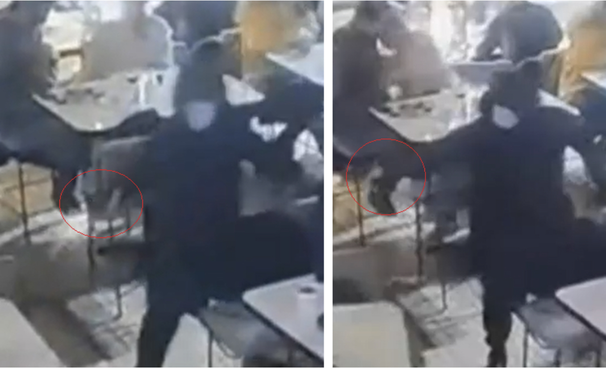 Në video shhet autori duke qëlluar drejt viktimave, ndërsa njerëzit e pranishëm në lokal vrapojnë të tmerruar.