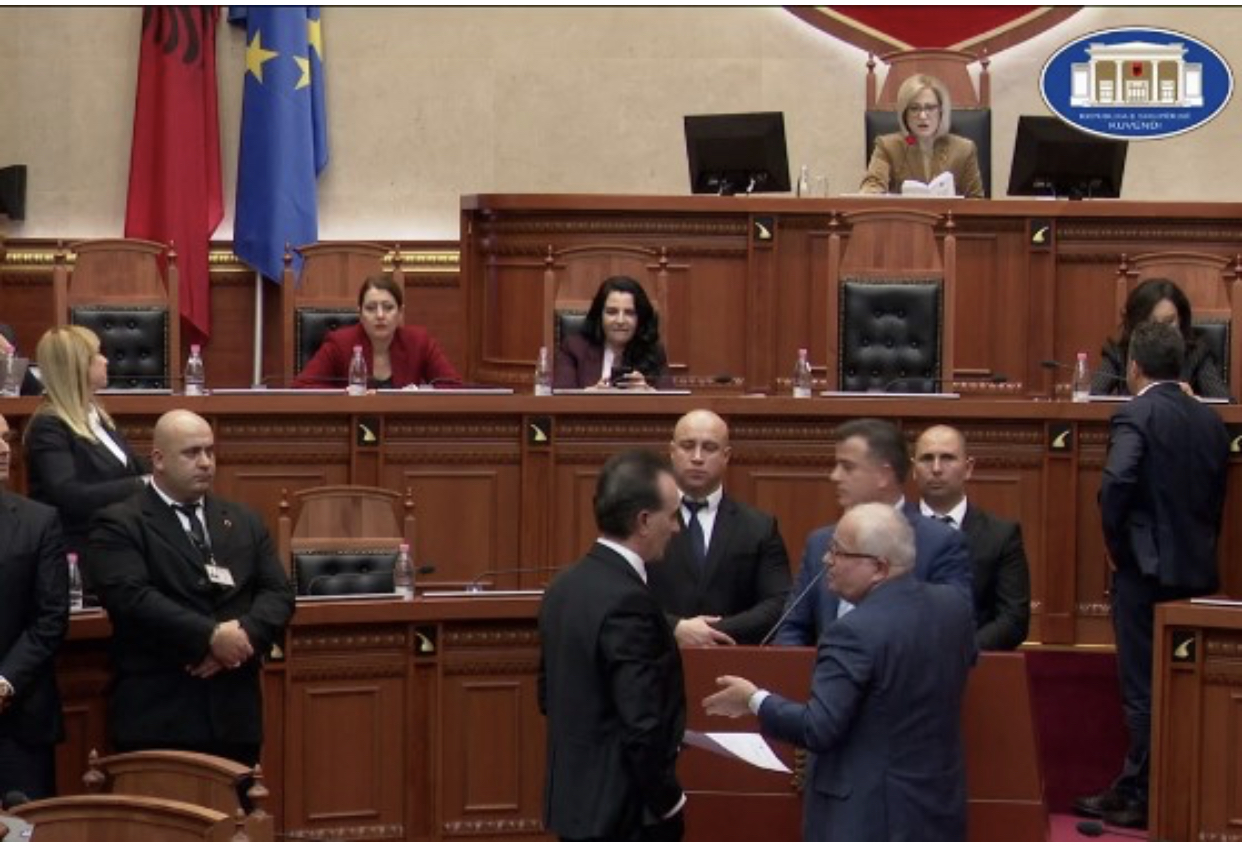 Noka bllokoi foltoren duke bërë që ministrja Krifca të mbante fjalën e saj nga vendi, teksa deputetët demokratë po përplasnin shishe dhe duart në fotlore.