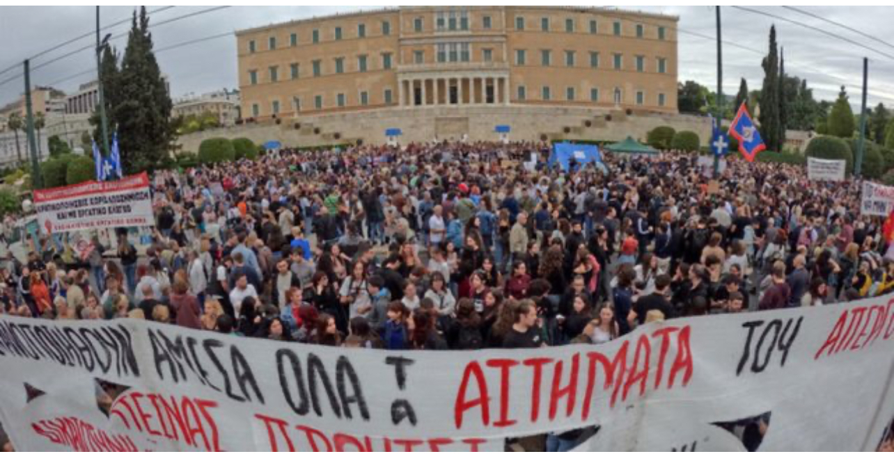 Dhjetëra njerëz janë grumbulluar në shesh, pas orës së njoftuar më herët në 18:30 për ditën e sotme. Babai i Denisit vazhdon grevën e urisë për të 14-ën ditë. Tubime po zhvillohen edhe në qytete të tjera të Greqisë, si në Selanik, Patra, Larisa, Heraklion dhe Rethymno. Në Larisa tubimi ka vijuar edhe pse binte shi.