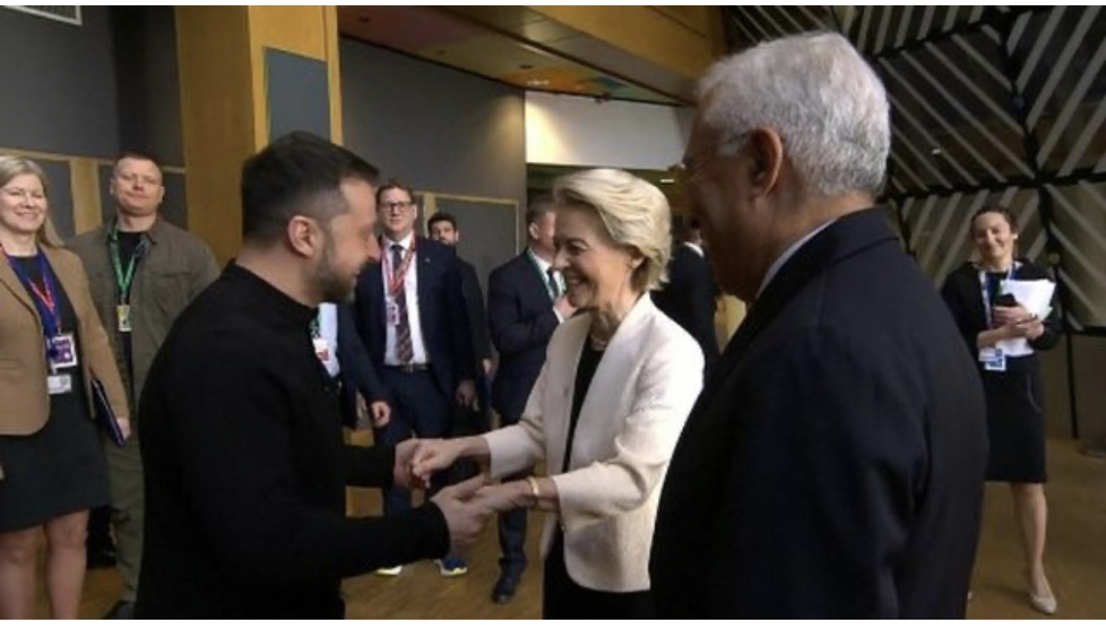 BRUKSEL- Presidenti ukrainas, Volodymyr Zelensky, ka mbërritur në Bruksel, ku do të mbahet sot samiti urgjent i organizuar nga 27 udhëheqësit e Bashkimit Evropian. Zelensky është pritu me buzëqeshje nga liderët evropianë teksa vërehet dhe në foto takimi i tij me Ursula von der Leyen.