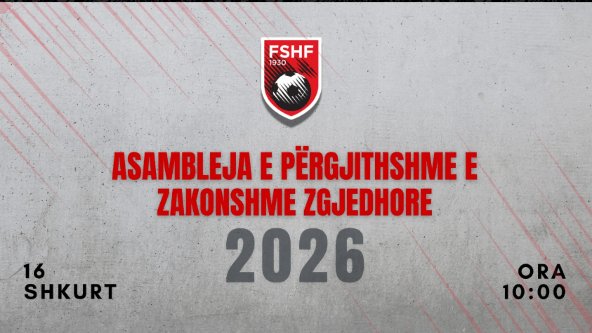Komiteti Ekzekutiv i Federatës Shqiptare të Futbollit, nën drejtpeshimin e Presidentit Armand Duka, zhvilloi mbledhjen e tij të parë për vitin 2026. Një nga temat kryesore të diskutimit ishte organizimi i Asamblesë së Përgjithshme të Zakonshme Zgjedhore të FSHF-së. Sipas statutit të organizatës, vendimi i marrë është që Asambleja të zhvillohet më 16 shkurt 2026, në orën 10:00, në ambientet e “Shtëpisë së Futbollit”.