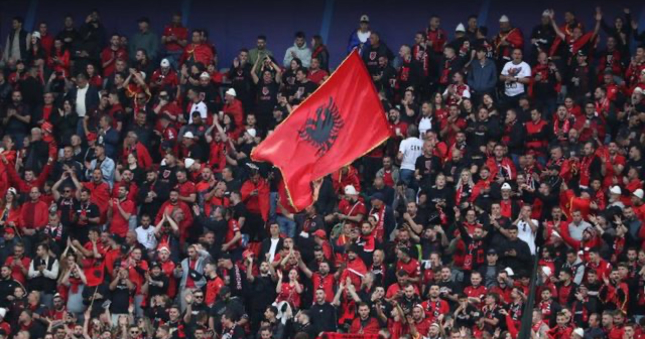 Gjithashtu rekord ishin edhe brohoritjet nga tifozët shqiptarë.