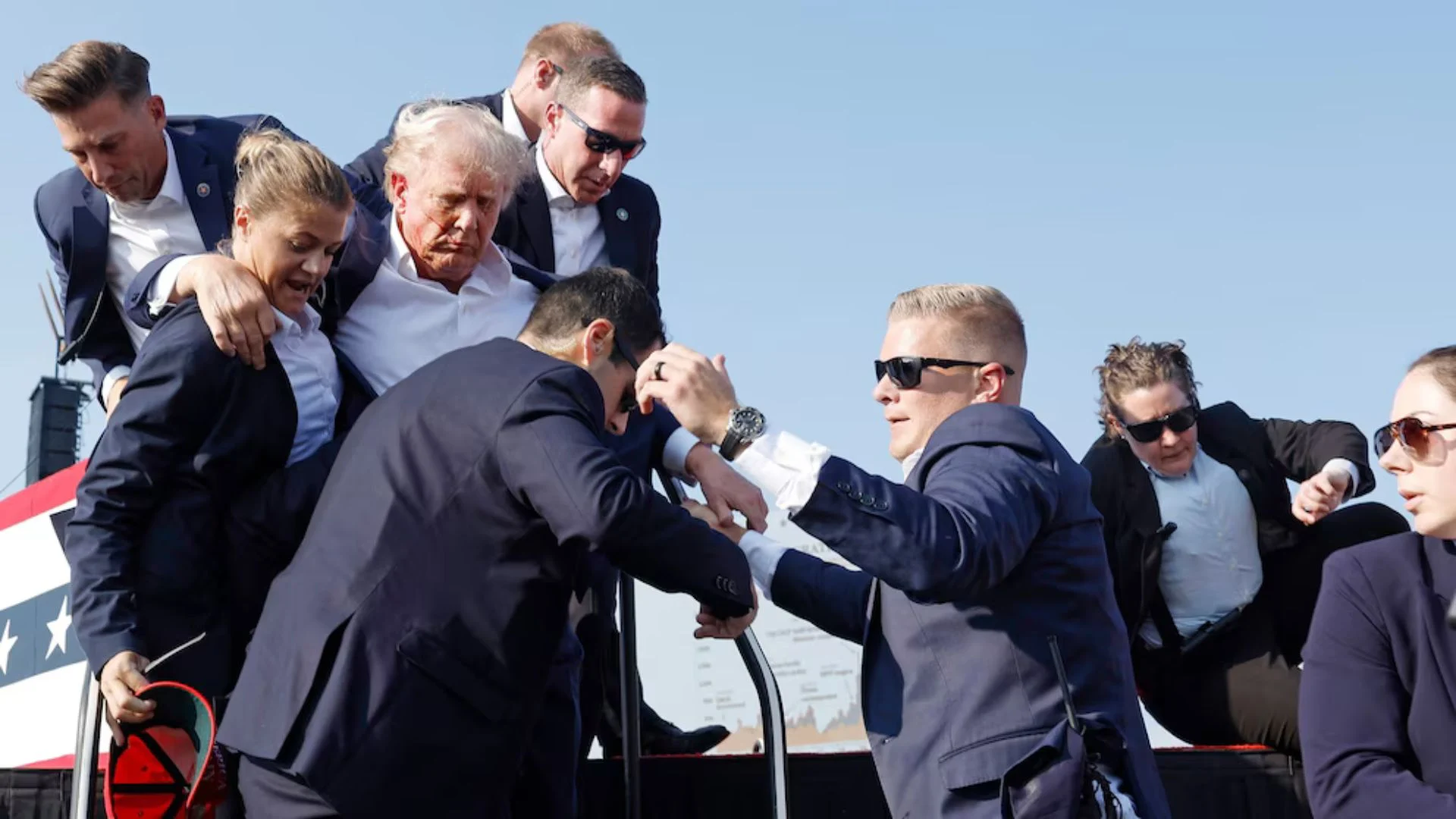 Ngjarja më e rëndë ndodhi në Butler, Pensilvani, gjatë një tubimi elektoral në ajër të hapur. Thomas Matthew Crooks, 20 vjeç pa precedent penal, pozicionoi veten në një ndërtesë rreth 130 metra larg skenës dhe hapi zjarr. Një plumb goditi presidentin në veshin e djathtë, ndërsa një tjetër vrau një person në turmë. Snajperët e Shërbimit Sekret reaguan menjëherë dhe neutralizuan sulmuesin. Në kaos Trump u nxor me urgjencë, por pak çaste më vonë u ngrit me grushtin lart, i gjakosur, një imazh që u kthye në simbol të fushatës së tij.