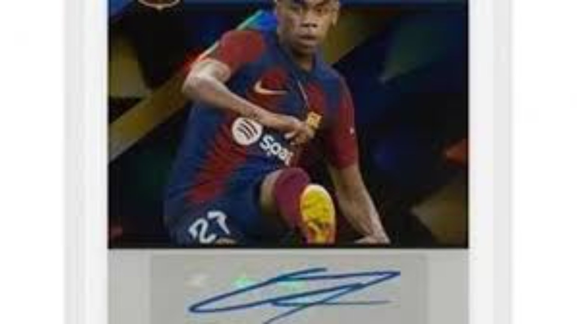 Tashmë, tifozët e Barcelonës dhe të të apasionuarit pas futbollit kanë mundësinë të zotërojnë një objekt unik: një kartë “rookie edition” të firmosur nga Yamal. Kjo kartë është në ankand ekskluziv në Cataëiki, një platformë prestigjioze për tregtimin e objekteve të veçanta. Kartën e ka zbuluar rastësisht një koleksionist italian që e gjeti në një zarf. Vlera aktuale e kësaj karte vlerësohet mes 18 mijë dhe 20 mijë eurosh, duke e bërë atë një thesar për çdo koleksionist.