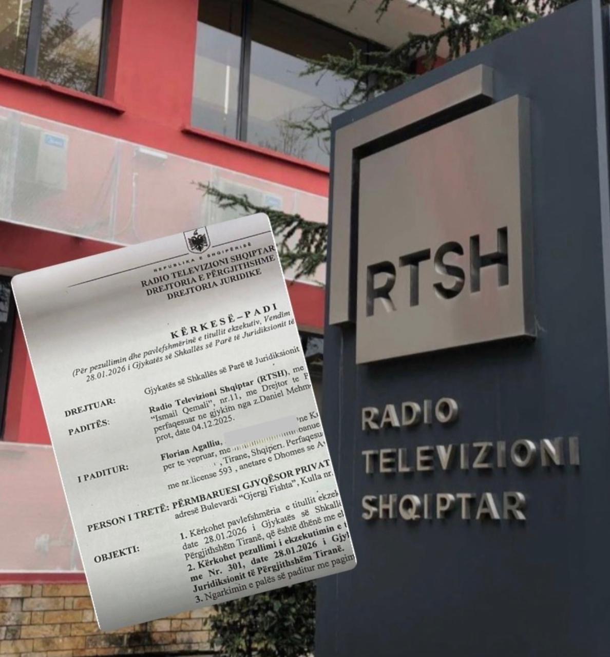Në kërkesë-padi, RTSH kërkon gjithashtu pezullimin dhe pavlefshmërinë e titullit ekzekutiv të vendimit të datës 28.01.2026 të Gjykatës së Shkallës së Parë të Juridiksionit të Përgjithshëm Tiranë.