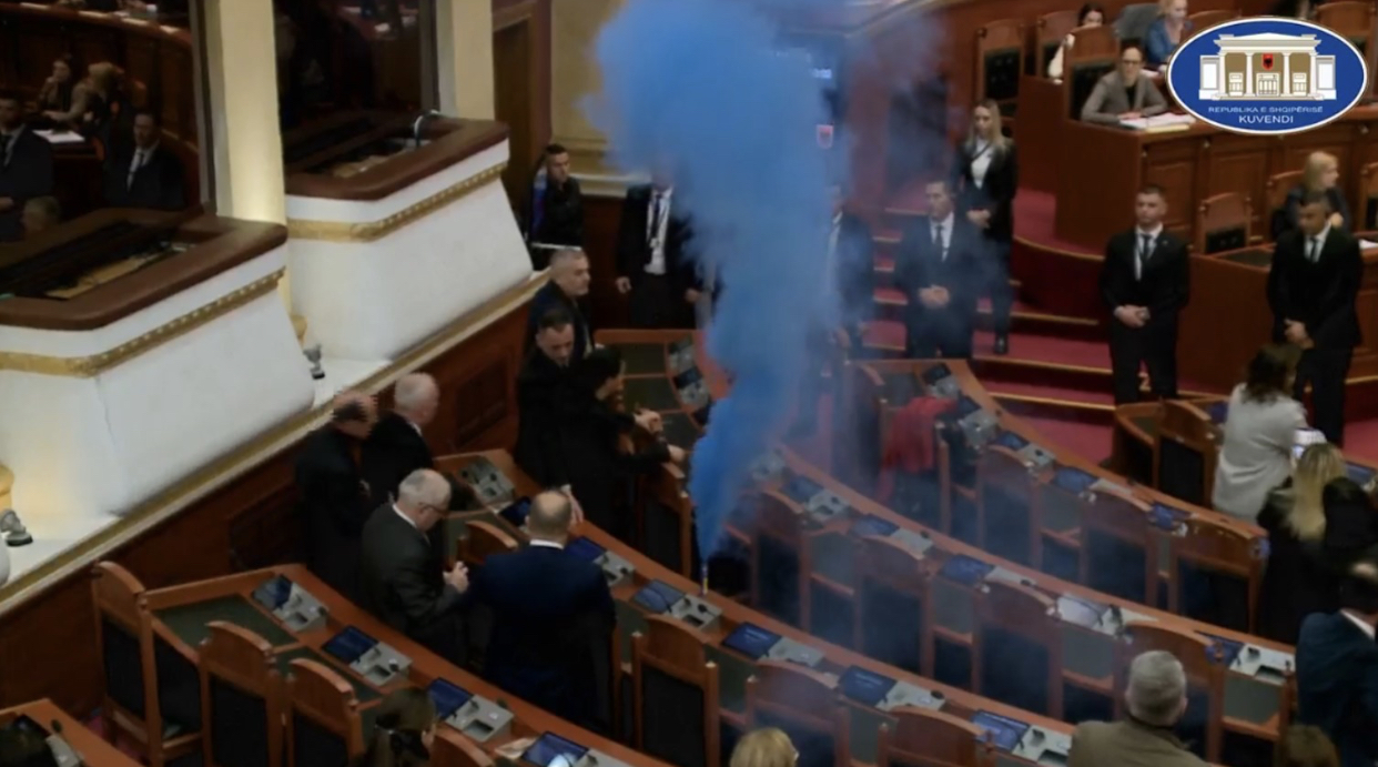 Opozitarët bllokuan të gjitha hyrjet, por socialistët dhe ministrat arritën që të futen brenda. Me një kontroll të rreptë u lejuan që të futen edhe opozitarët që nuk ishin të përjashtuar. Por Garda sërish dështoi. Tymuese u futën brenda. Sapo nisi seanca u ndezën. Megjithatë Lindita Nikolla vijoi seancën sikur të mos kishte ndodhur asgjë. Njoftoi se gjykata Kushtetuese ka pezulluar marrëveshjen me Italinë dhe votoi pjesën tjetër të rendit të ditës me Gadën që mbronte deputetët dhe ministrat.