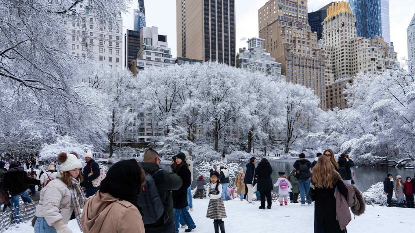 Qyteti i Nju Jorkut u zgjua i mbuluar nga një shtresë e trashë bore të dielën, duke krijuar një peizazh magjik në Parkun Qendror. Borës i dha fillim rënia gjatë natës, e cila u intensifikua në orët e para të mëngjesit, për t’u dobësuar më vonë deri në mesditë. Kjo ishte një ngjarje e veçantë për qytetin, i cili gjatë viteve të fundit kishte përjetuar nivele më të ulëta të borës.