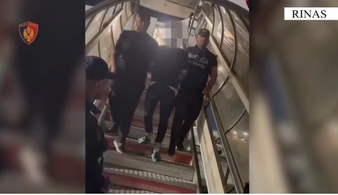 TIRANË– Ky është momenti kur reperi Keviol Ahmeti, i njohur ndryshe me emrin artistik” Clevio”, është depërtuar në Rinas. Ai u arrestua në Dubai për pëndjekje ndaj reperit Rigels Rajku, të njohur ndryshe me emrin “Noizy. Në pamje tregohet momenti kur ‘Cllevio’ deportohet në Rinas. Ahmeti pritet të përballet me drejtësinë shqiptare.