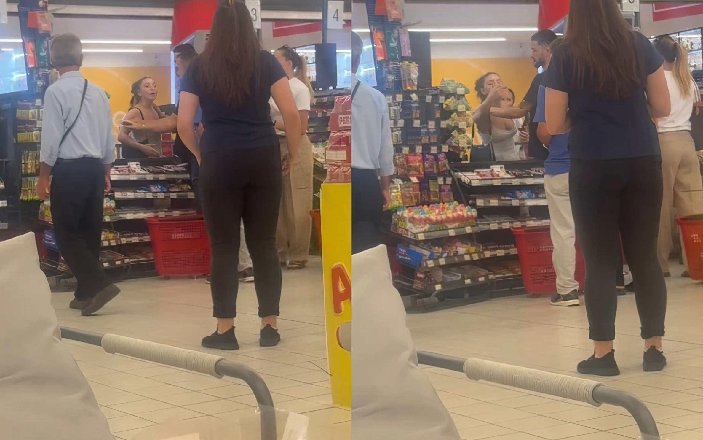 Një incident i tensionuar ka ndodhur sot në një supermarket, ku një vajzë e re është përfshirë në një përplasje verbale dhe fizike me një çift të moshuar. Sipas një dëshmitari që ka filmuar ngjarjen, konflikti ka filluar pasi gruaja e moshuar ka kaluar pa radhë te kasa, duke irrituar vajzën. Dëshmitari tha se vajza e re është ofenduar nga të moshuarit, e cila thoshte: “Mirë që futesh pa radhë, por më thua edhe la*ire.”