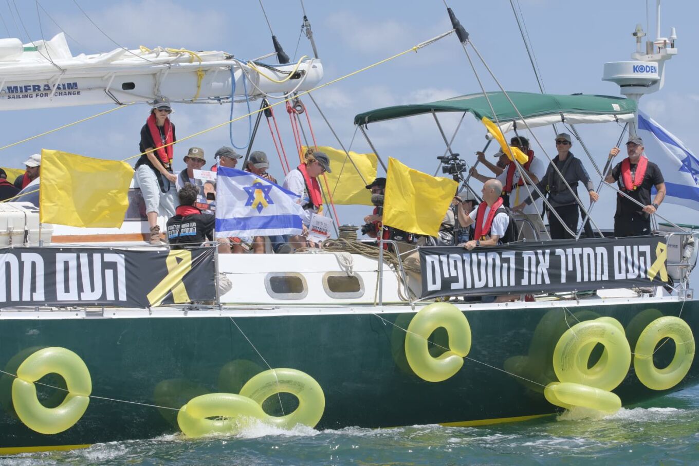 Sipas Forumit të Familjeve të Pengjeve, në këtë flotilje morën pjesë më shumë se njëzet persona, duke mbajtur flamuj të verdhë dhe postera me fytyrat e pengjeve. Gjatë nisjes, pasagjerët e anijes thërrisnin emrat e të dashurve të tyre, duke i dhënë një dimension emocional kësaj rrugëtimi protestues. Yehuda Cohen, babai i Nimrodit, njërit nga pengjet, e akuzoi qeverinë Netanyahu për rrezikimin e jetës së pengjeve përmes planeve të saj ushtarake dhe kërkoi ndihmë ndërkombëtare në një apel emocionale.