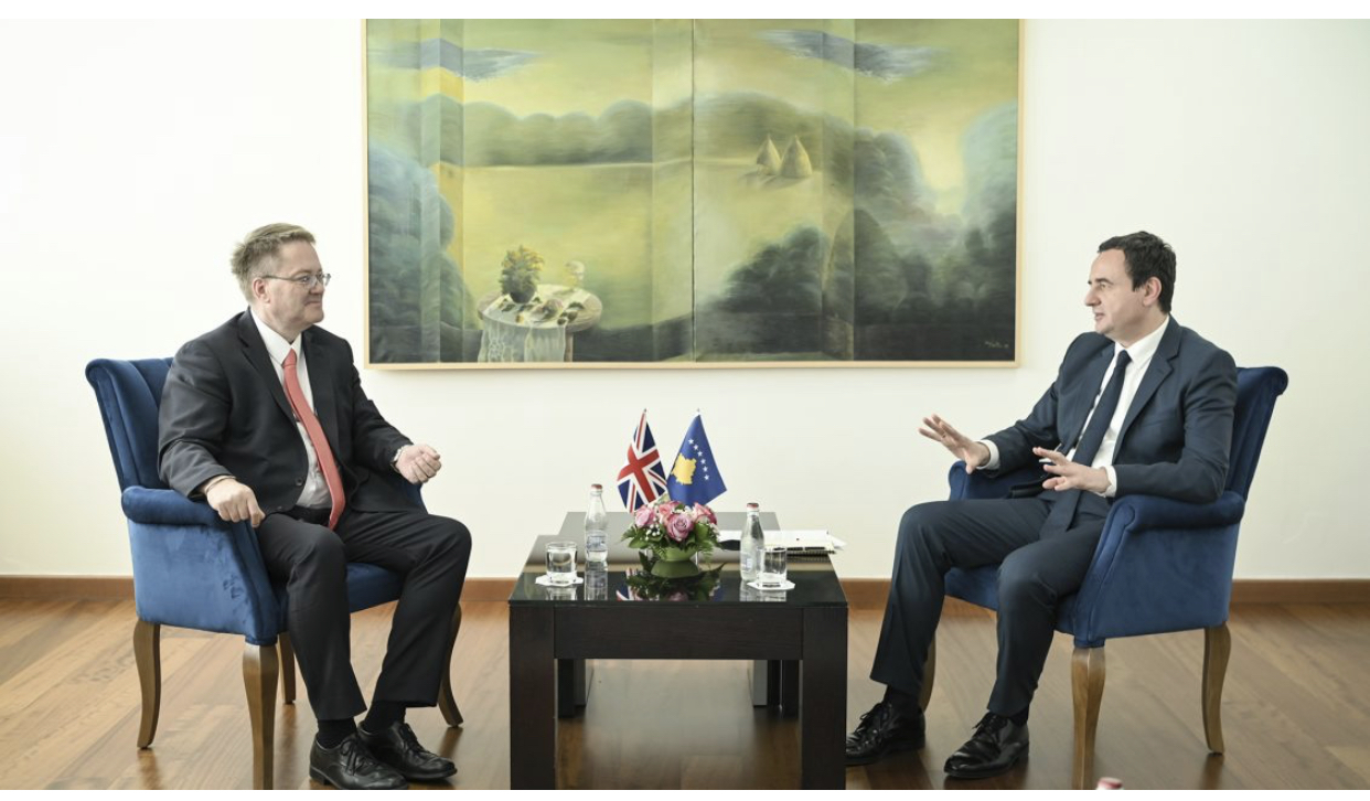 “Pas takimit që më 26 qershor Kryeministri i Republikës së Kosovës, Albin Kurti, zhvilloi me Sekretarin për Punë të Jashtme të Mbretërisë së Bashkuar, James Cleverly në Londër, sot priti në takim Ambasadorin e Mbretërisë së Bashkuar, Nicholas Abbott”, thuhet në njoftimin e kryeministrisë së Kosovës.