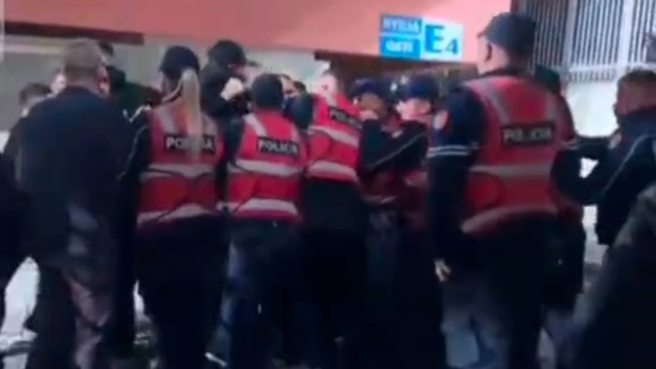 Tre tifozë të Teutës janë shoqëruar në komisariat, ndërsa Top Channel ka siguruar pamje ekskluzive nga brenda furgonit të policisë, ku shihen errësira dhe sirenat e makinës gjatë transportit të tifozëve. Pas verifikimeve, tifozët janë lënë të lirë dhe fatmirësisht nuk ka pasur të lënduar nga përplasjet.