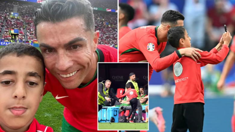 Ronaldo u sigurua që i riu të merrte foton e tij përpara se të kapej nga sigurimi dhe të hiqej nga stadiumi.
