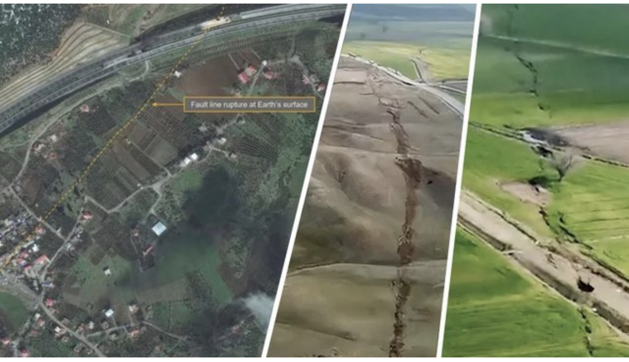 Çarja e madhe 500 km e gjatë që u krijua përgjatë tokës në zonat e prekura nga tërmeti në Turqi mund të shihet në një video të publikuar nga rrjeti turk Haber Turk.