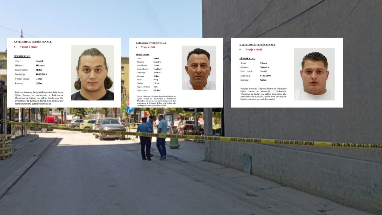 Policia e Kosovës ka shpallur në kërkim dy djemtë e Mefail Shkodrës, Engjull dhe Edonis Shkodra, për vrasjen e trefishtë që ndodhi sot në mesditë në Gjilan. Ngjarja ka tronditur qytetin, ku dyshohet se së bashku me babanë e tyre, Mefail Shkodrën, ata janë përfshirë në vrasjen e tre personave dhe plagosjen e një tjetër në rrugën “Ibrahim Rugova”.